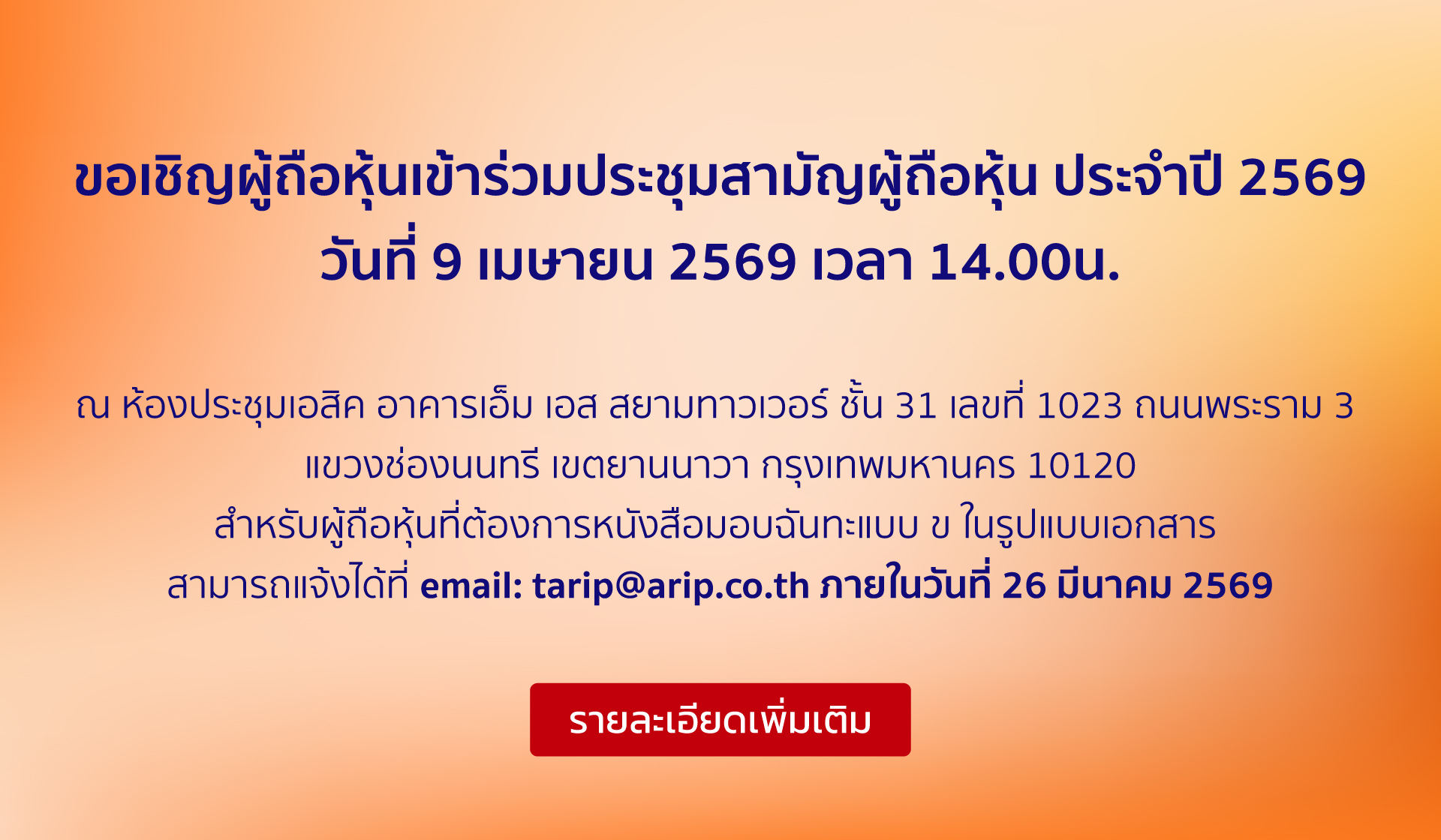 นิตยสาร BUSINESS+ โดย บริษัท เออาร์ไอพี จำกัด (มหาชน) ร่วมกับ มหาวิทยาลัยหอการค้าไทย จัดงานมอบรางวัล Thailand Top Company Awards 2026 เพื่อเชิดชูองค์กรธุรกิจไทยที่มีผลการดำเนินงานโดดเด่นและมีความเป็นเลิศในการบริหารจัดการธุรกิจ พร้อมเป็นแรงบันดาลใจด้านแนวคิดและกลยุทธ์การดำเนินธุรกิจให้แก่องค์กรอื่น ๆ อันจะนำไปสู่การเติบโตอย่างแข็งแกร่งของเศรษฐกิจไทยในอนาคต โดยในปีนี้จัดขึ้นภายใต้แนวคิด “Thrive on Resilience: การปรับตัวเพื่ออยู่รอดและสร้างการเติบโต” โดย เน้นย้ำความสำคัญของความยืดหยุ่นและความสามารถขององค์กรธุรกิจในการรับมือกับความเปลี่ยนแปลงและความไม่แน่นอนของเศรษฐกิจโลก ผ่านการเรียนรู้ การพัฒนา และการพลิกวิกฤตให้เป็นโอกาสเพื่อสร้างการเติบโตอย่างยั่งยืน โดยในปีนี้มีองค์กรที่ได้รับรางวัลรวมทั้งสิ้น 18 รางวัล ประกอบด้วยรางวัลประเภทอุตสาหกรรม 7 รางวัล และรางวัลความเป็นเลิศ 11 รางวัล ซึ่งล้วนเป็นแบบอย่างของความสำเร็จขององค์กรธุรกิจไทยในการขับเคลื่อนเศรษฐกิจของประเทศให้เติบโตอย่างต่อเนื่อง ภายในงานได้รับเกียรติจาก ศาสตราจารย์เกียรติคุณ นพ.เกษม วัฒนชัย ร่วมปาฐกถาพิเศษ ถ่ายทอดมุมมองเกี่ยวกับการพัฒนาเศรษฐกิจและบทบาทขององค์กรธุรกิจไทยท่ามกลางความเปลี่ยนแปลงของโลก พร้อมด้วยผู้บริหารองค์กรชั้นนำจากหลากหลายอุตสาหกรรมเข้าร่วมงานอย่างคับคั่ง โดยจัดขึ้น ณ ห้องบอลรูม โรงแรมอินเตอร์คอนติเนนตัล …